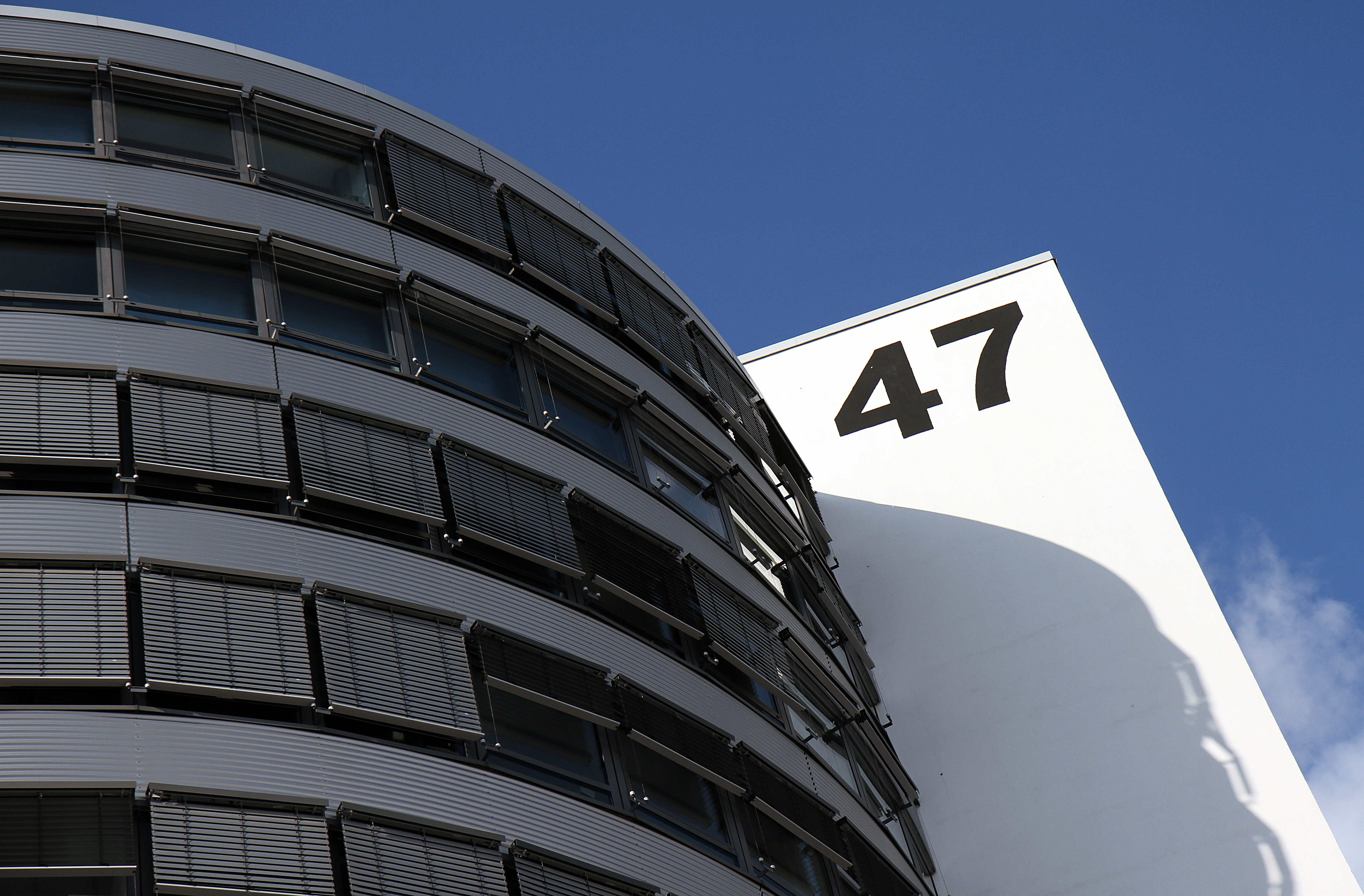 | 47, Verwaltung, Turm, blauer Himmel, Detail |