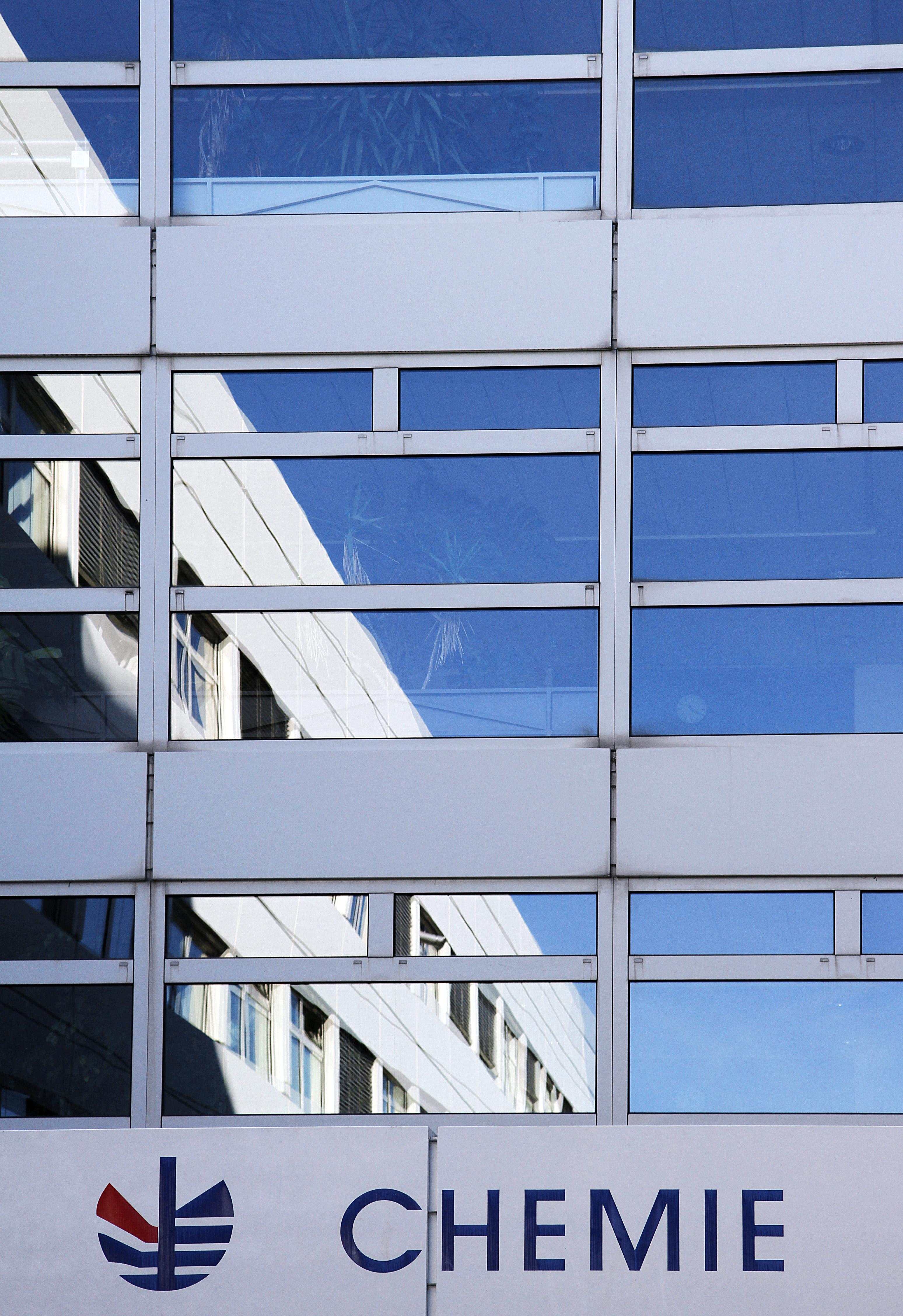 52, Chemie, Spiegelung, baluer Himmel, Detail |