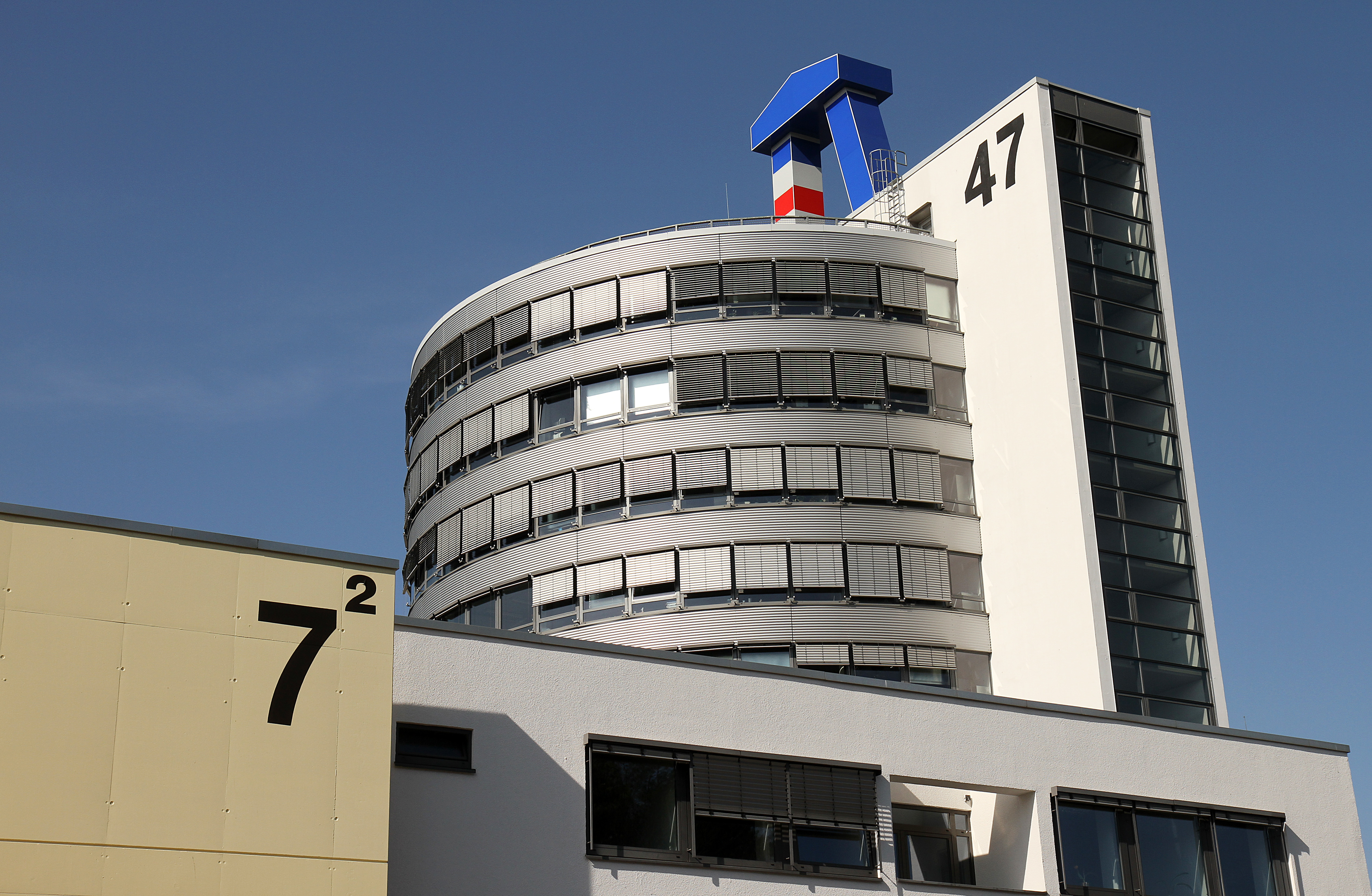 | 47, 49, Verwaltung, Turm, Logo, blauer Himmel |