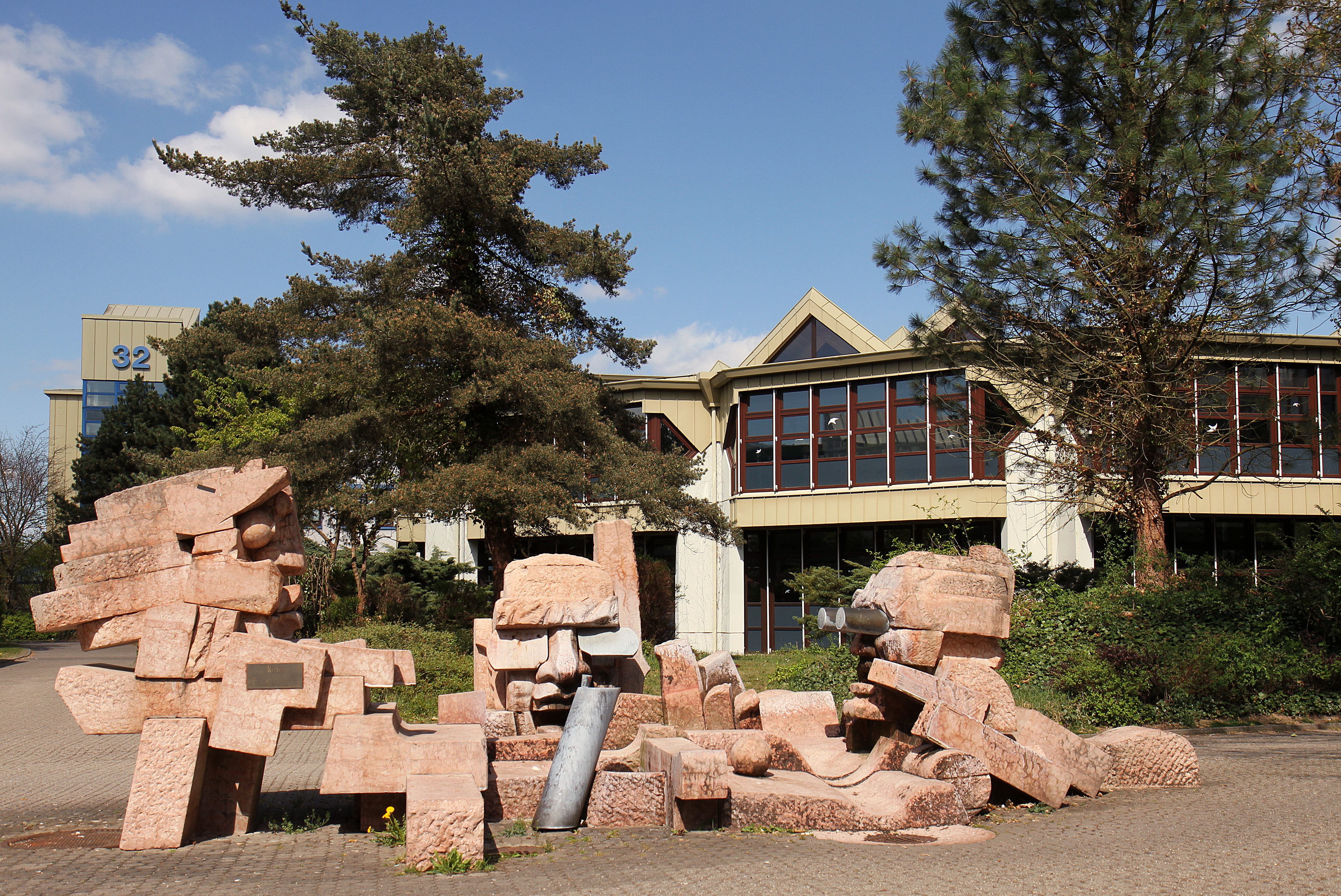 | 32, Kunst, Skulptur, Brunnen, Zentralbibliothek, blauer Himmel |