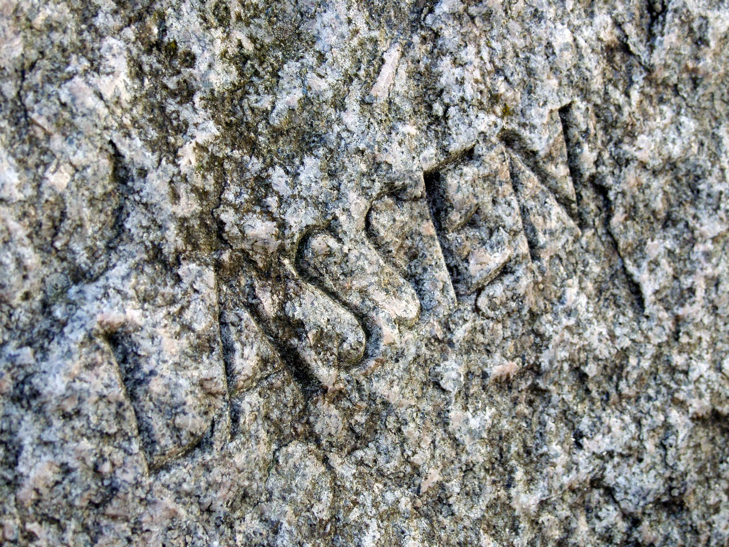 Das Wort "Lassen" steht auf der der Mensa abgewandten Seite. Kunst, Skulptur