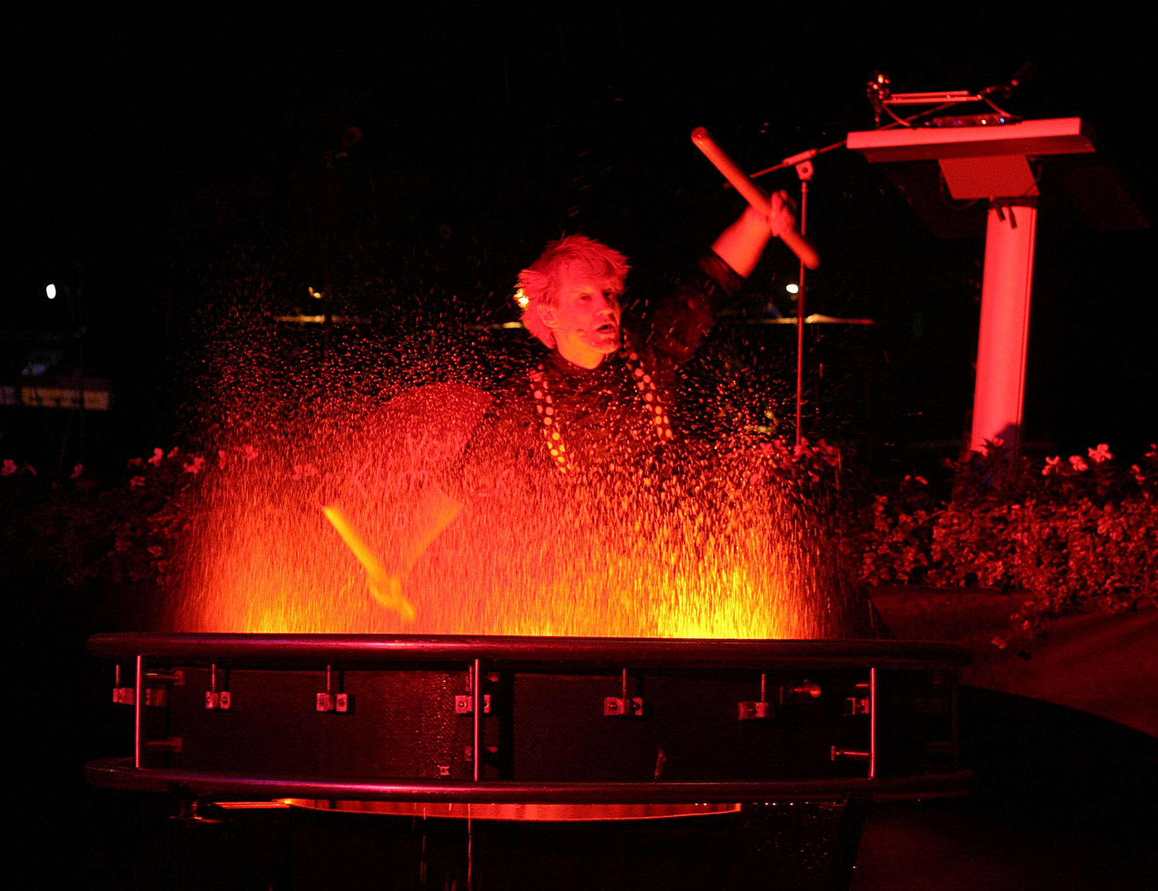 Der Künstler Christoph Engels von der Zirkusfabrik Berlin begeisterte die anwesenden Gäste mit einer "feurigen" Trommeldarbietung.