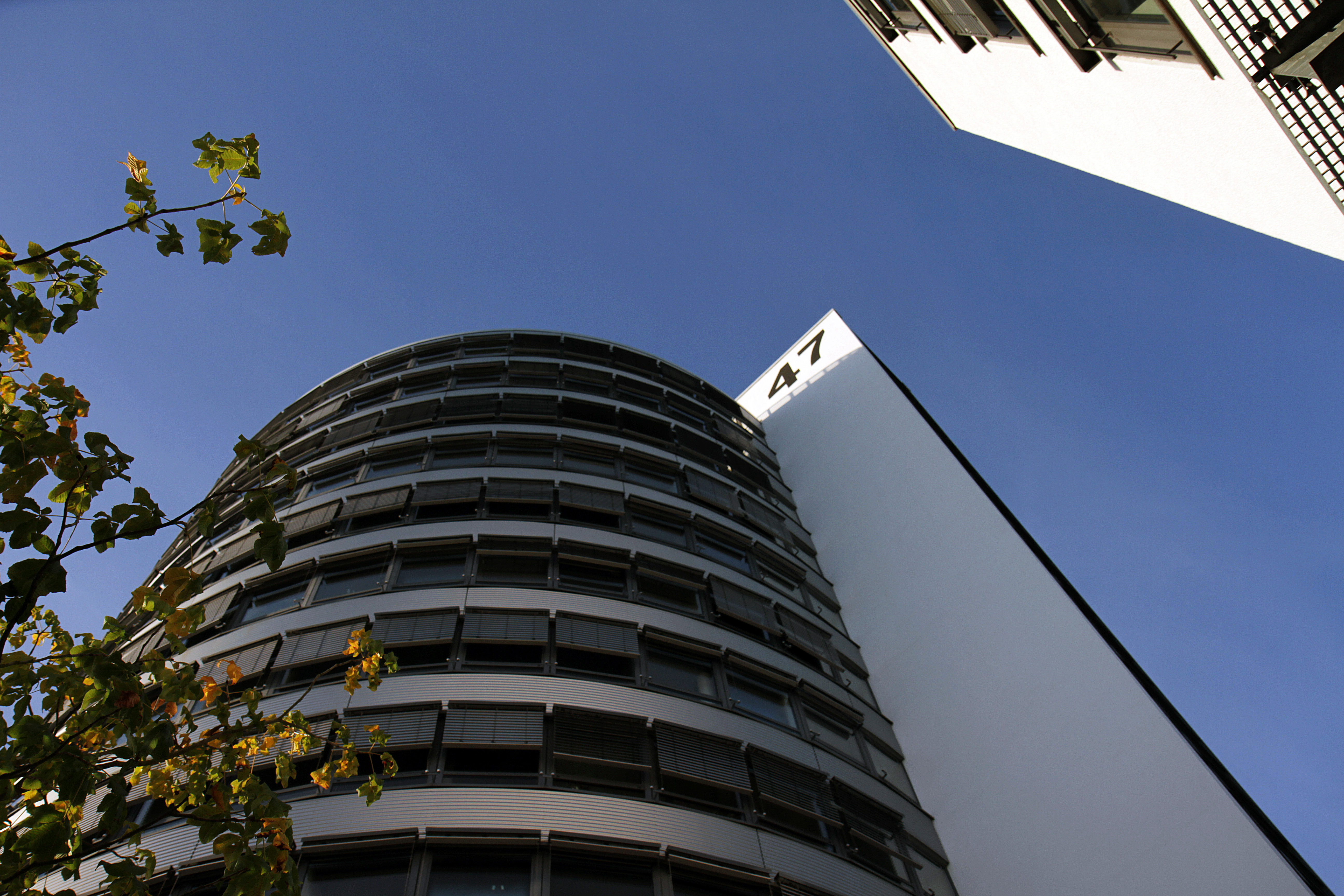 | 47, 49, blauer Himmel, steile Perspektive |