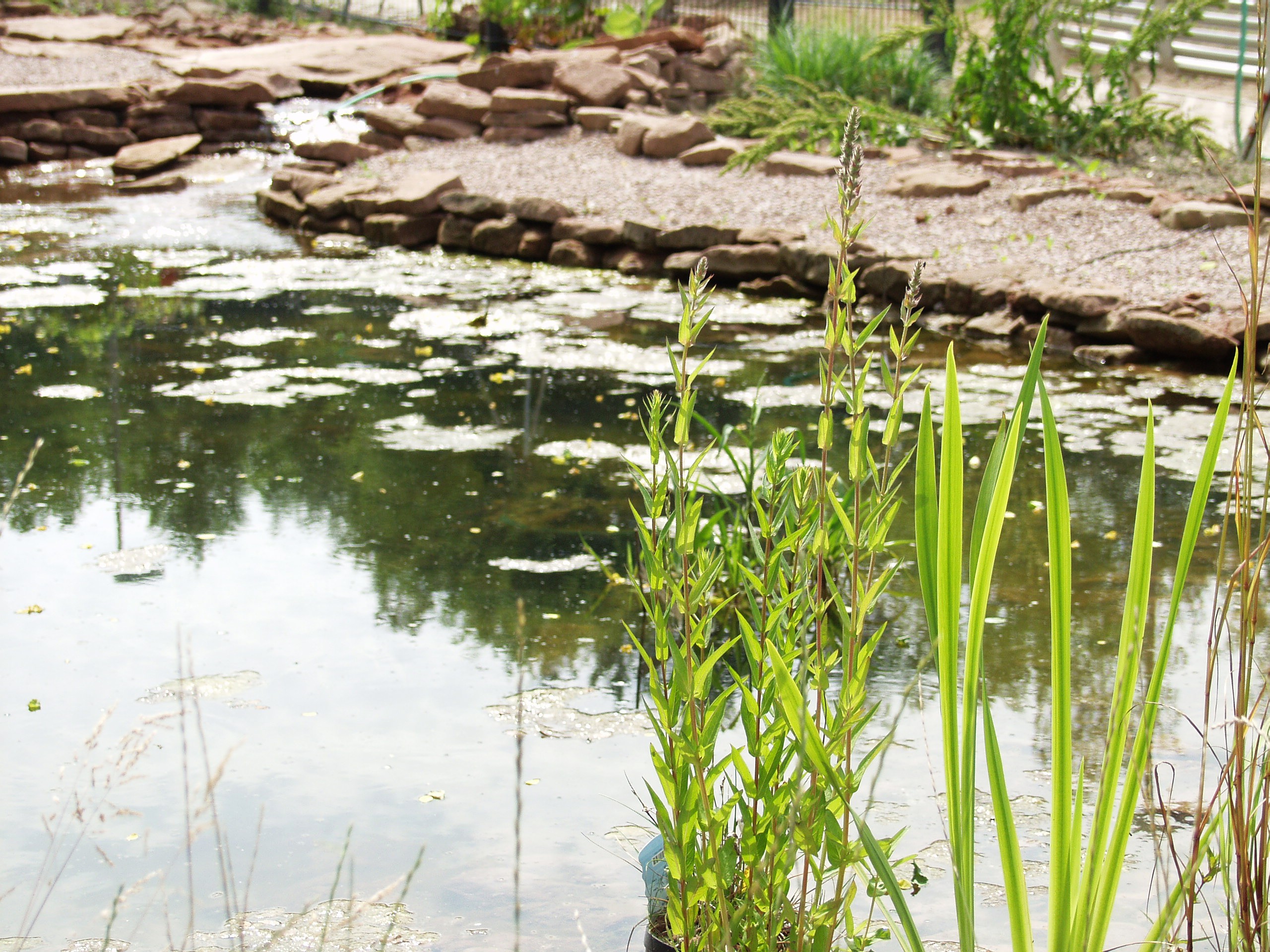Impression aus dem Fachbereichsgarten: Künstlich angelegter Wasserlauf. Fachbereichsgarten, Teich, grün